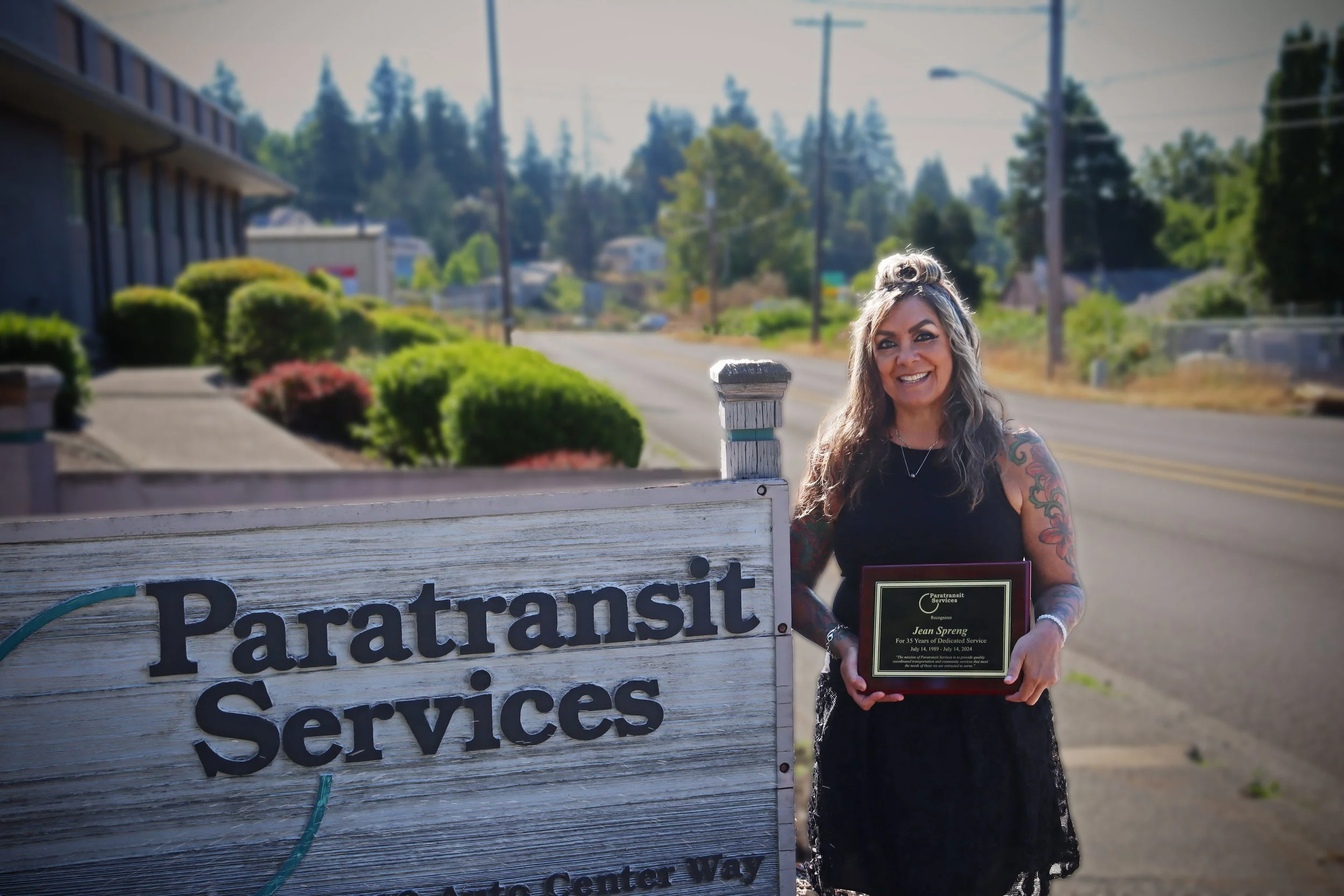 Jean is a great asset to Paratransit Services. She is an example to all of us with her work ethic, dependability and dedication. Paratransit Services is committed to making a difference each day in the lives of our employees and in the communities, we are proud to serve. It is an honor to recognize Jean Spreng for her many contributions for over 35 years!
